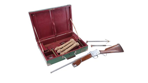 На продажу выставлено гарпунное ружье WW Greener Mark и удочка Fenwick с рыболовной катушкой Senator 16/0. Это один из немногих реквизитов «Челюсти» который пережил съемки экстремальных условиях, выдержав воздействие соленой водо, трюки и челюсти механической акулы.