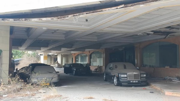 До сих пор у главного входа стоят три роскошных седана Rolls-Royce Phantom Extended Wheelbas, за которые было заплачено по полмиллиона долларов за каждый. Хотя часть стекл разбито, а кузов расписан граффити, в остальном они хорошо сохранились, местные жители не пробовали разбирать из на запчасти. Около них стоит Mercedes-Benz S500 середины 2010-х года, который новым в салоне стоил 100.000 долларов на тот момент.