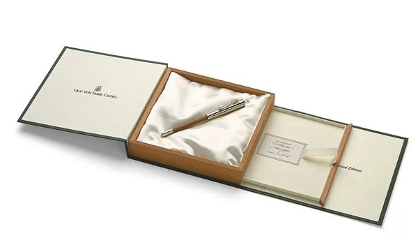 Корпус Perfect Pencil Limited Edition Whitegold сделан из оливкового дерева возрастом 240 лет. Верхняя накладка с ластиком для стирания и колпачком с точилкой сделаны из белого золота. Торец колпачка украшен гербом Графа фон Фабер-Кастелла, под которым закреплено три бриллианта. Карандаш упакован в подарочную коробку в виде блокнота
